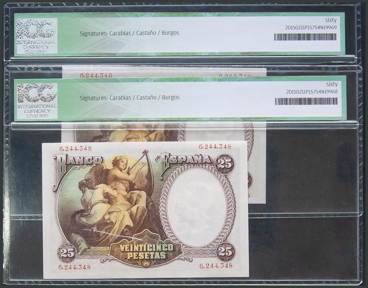 25 Pesetas. 25 de Abril de 1931. Pareja correlativa. Sin serie. (Edifil 2017: 358). SC. Encapsulado ICG60, ambos.