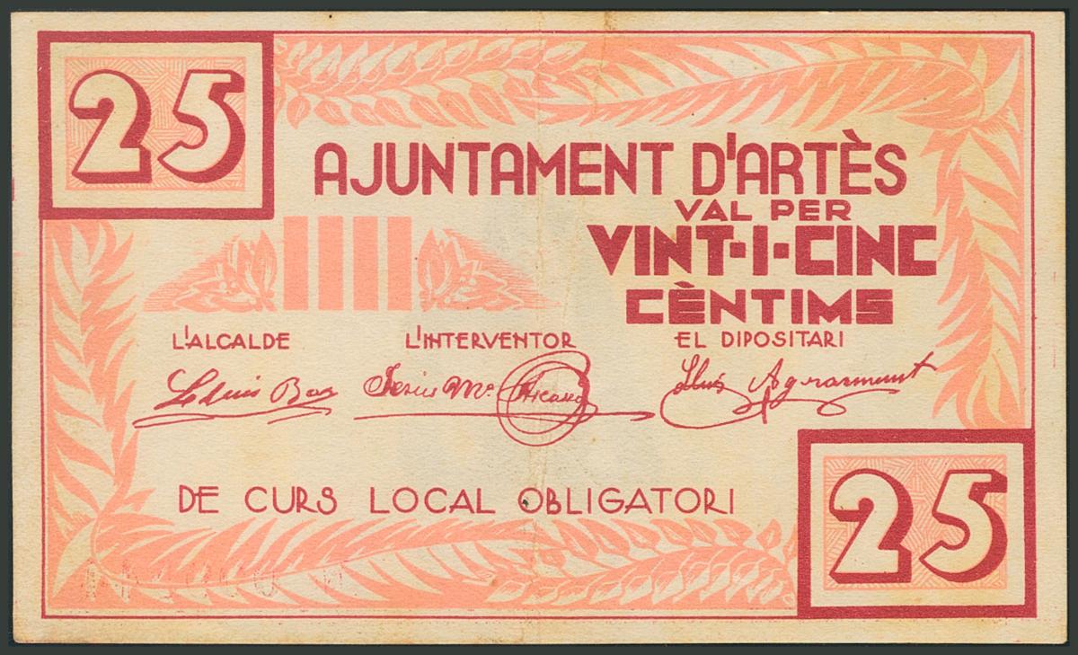 ARTES (BARCELONA). 25 Céntimos. (1938ca). (González: 6415). EBC.