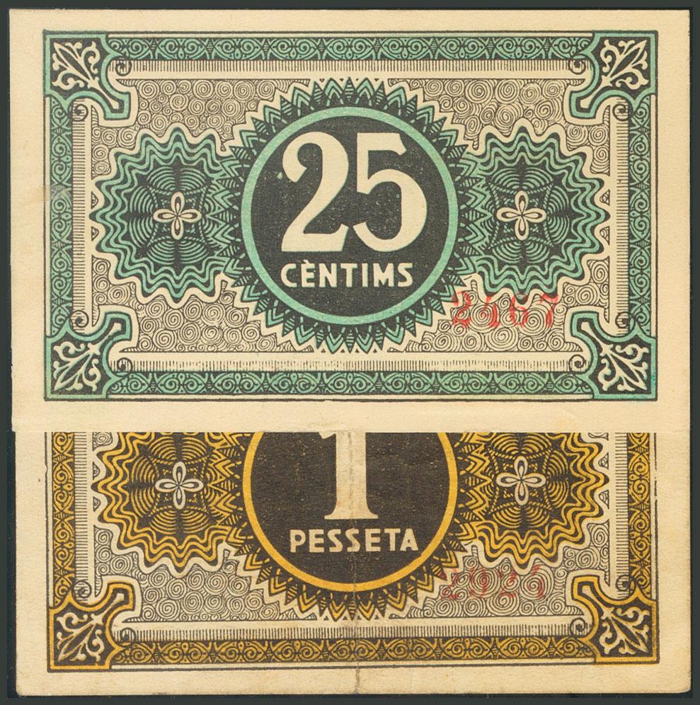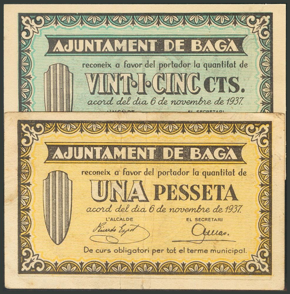 BAGA (BARCELONA). 25 Céntimos y 1 Peseta. 6 de Noviembre de 1937. (González: 6472, 6474). MBC.