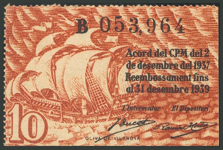 BARCELONA. 10 Céntimos. 2 de Diciembre de 1937. Serie B. (González: 6523). SC.