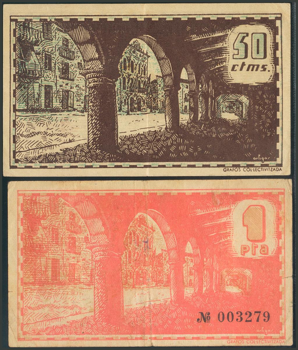 BELLPUIG D´URGELL (LERIDA). 50 Céntimos y 1 Peseta. (1938ca). (González: 6981/82). BC.