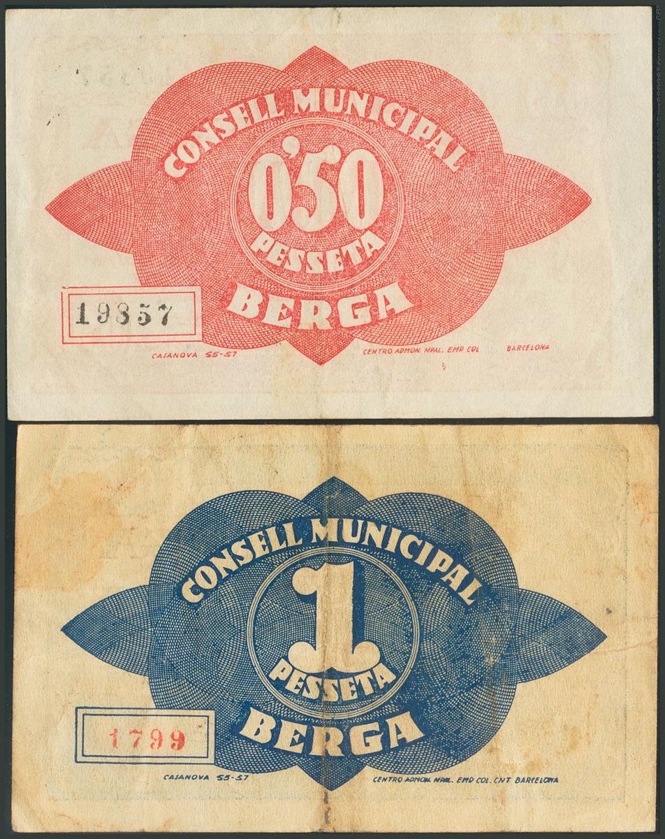 BERGA (BARCELONA). 50 Céntimos y 1 Peseta. 10 de Mayo de 1937. (González: 7037/38). MBC/BC.