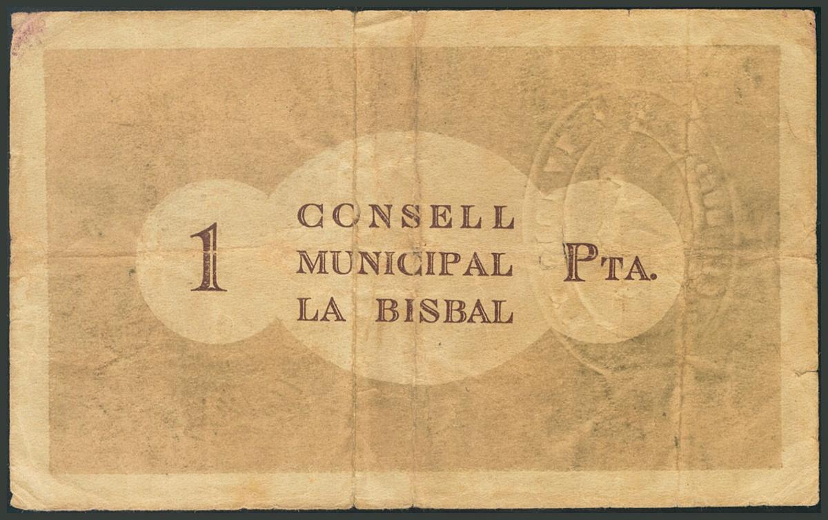LA BISBAL (GERONA). 1 Peseta. (1938ca). (González: 7061). BC.