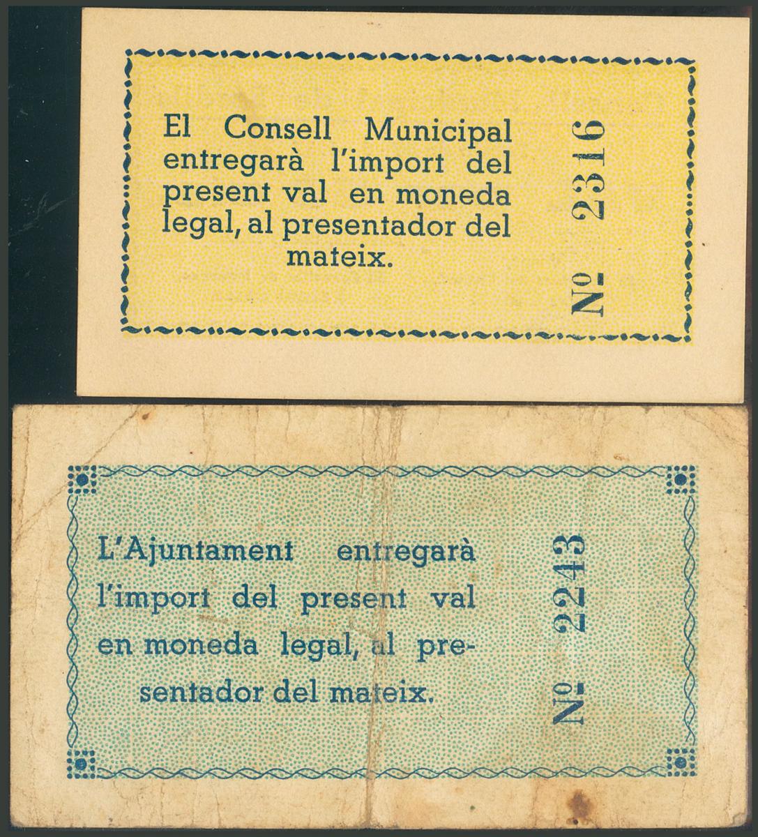 BORDILS (GERONA). 50 Céntimos y 1 Peseta. 20 de Mayo de 1937. (González: 7136/37). SC/BC.