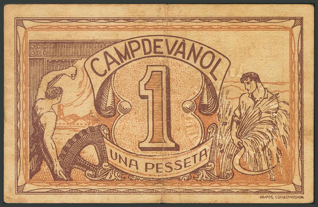 CAMPDEVANOL (GERONA). 1 Peseta. 1 de Junio de 1937. (González: 7329). BC.