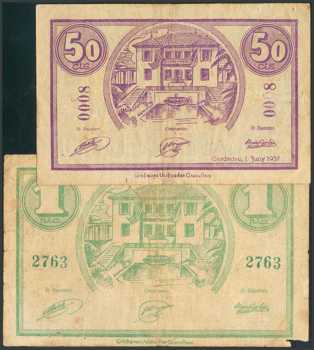 CARDEDEU (BARCELONA). 50 Céntimos y 1 Peseta. 1 de Junio de 1937. (González: 7386/87). RC.