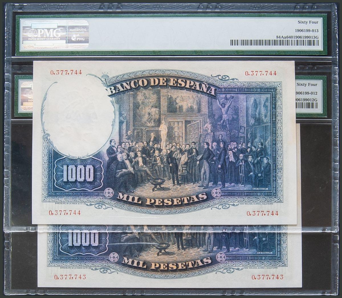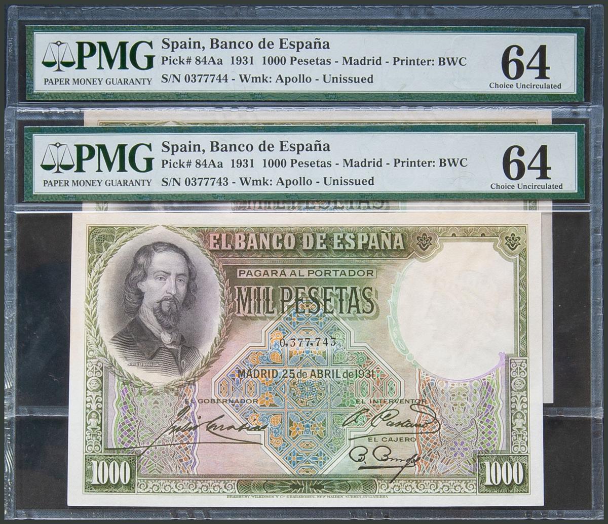 1000 Pesetas. 25 de Abril de 1931. Pareja correlativa. Sin serie. (Edifil 2017: 362). Encapsulado PMG64, ambos. SC.