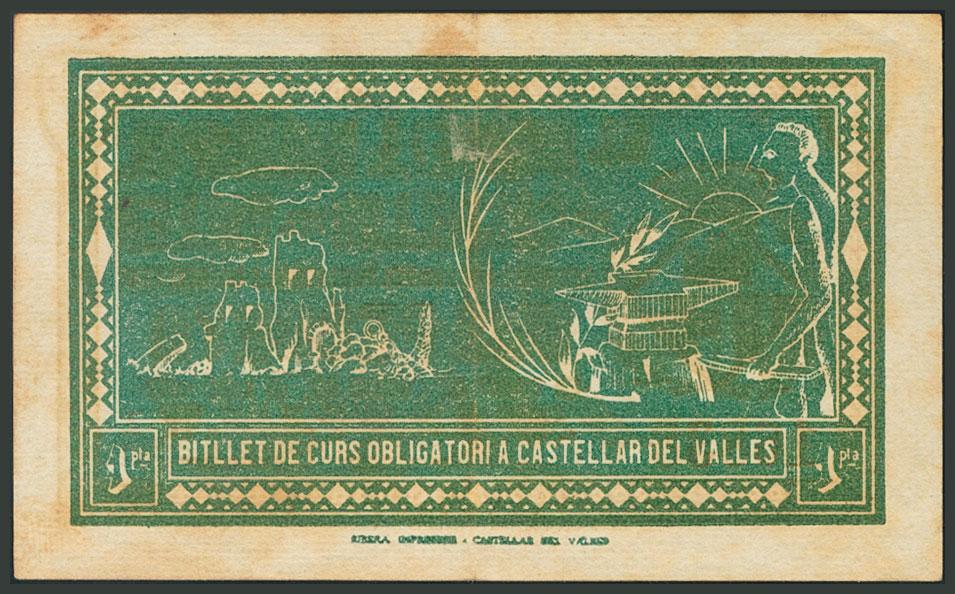 CASTELLAR DEL VALLES (BARCELONA). 1 Peseta. Marzo 1937. (González: 7421). MBC.