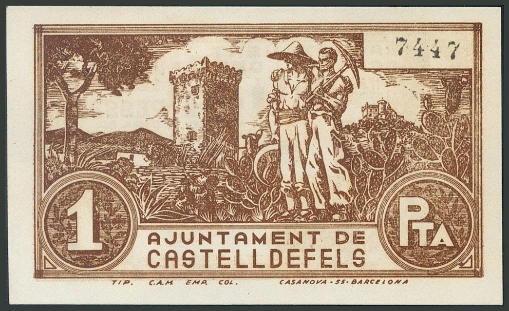 CASTELLDEFELS (BARCELONA). 1 Peseta. 23 de Abril de 1937. (González: 7448). SC-.
