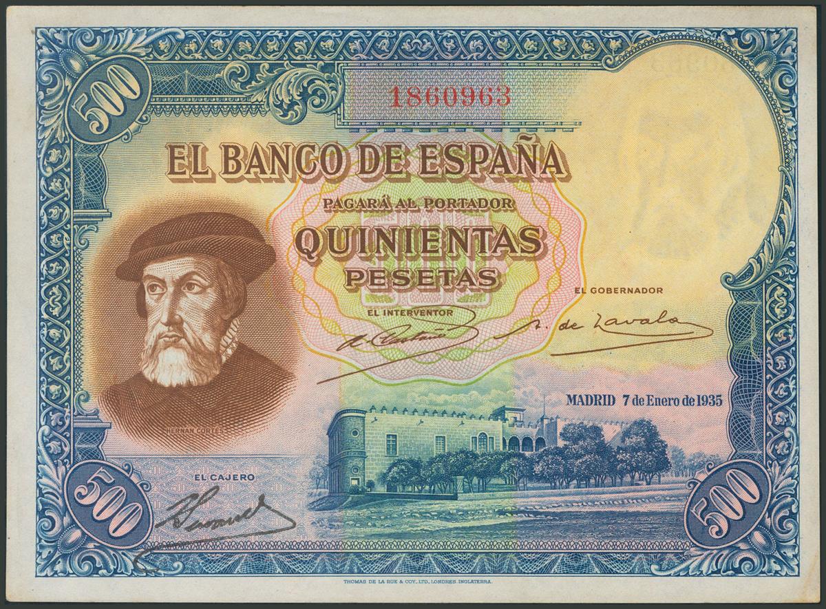 500 Pesetas. 7 de Enero de 1935. Sin serie. (Edifil 2017: 365). Raro. EBC.