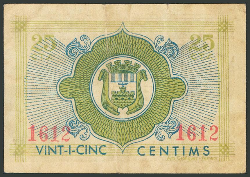 FARNERS DE LA SELVA (GERONA). 25 Céntimos. 14 de Octubre de 1937. (González: 7831). MBC.
