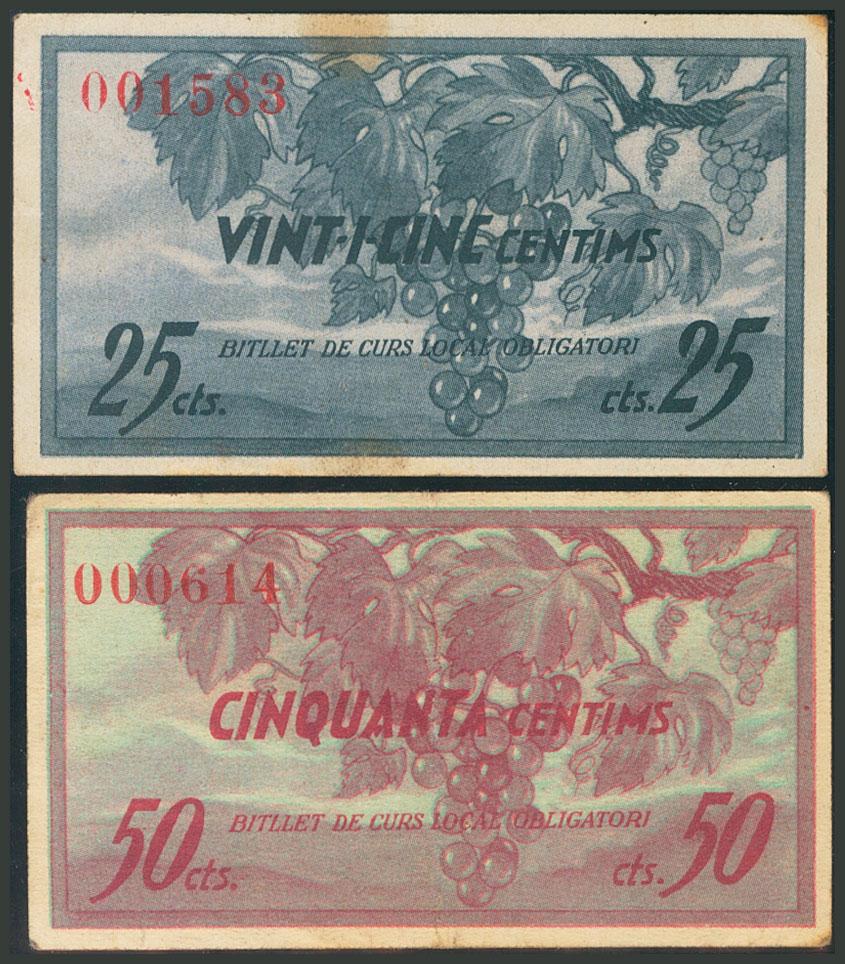 FATARELLA (TARRAGONA). 25 Céntimos y 50 Céntimos. 6 de Julio de 1937. (González: 7833/34). EBC.