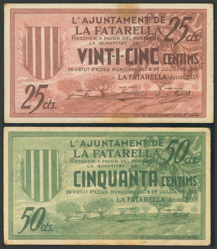 FATARELLA (TARRAGONA). 25 Céntimos y 50 Céntimos. 6 de Julio de 1937. (González: 7833/34). EBC.