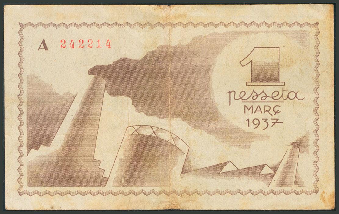 FIGUERES (GERONA). 1 Peseta. Marzo 1937. Serie A. (González: 7850). MBC.