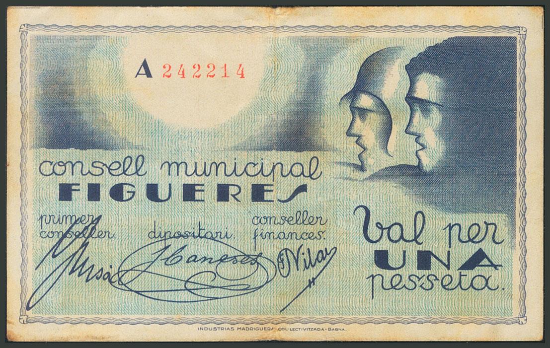 FIGUERES (GERONA). 1 Peseta. Marzo 1937. Serie A. (González: 7850). MBC.