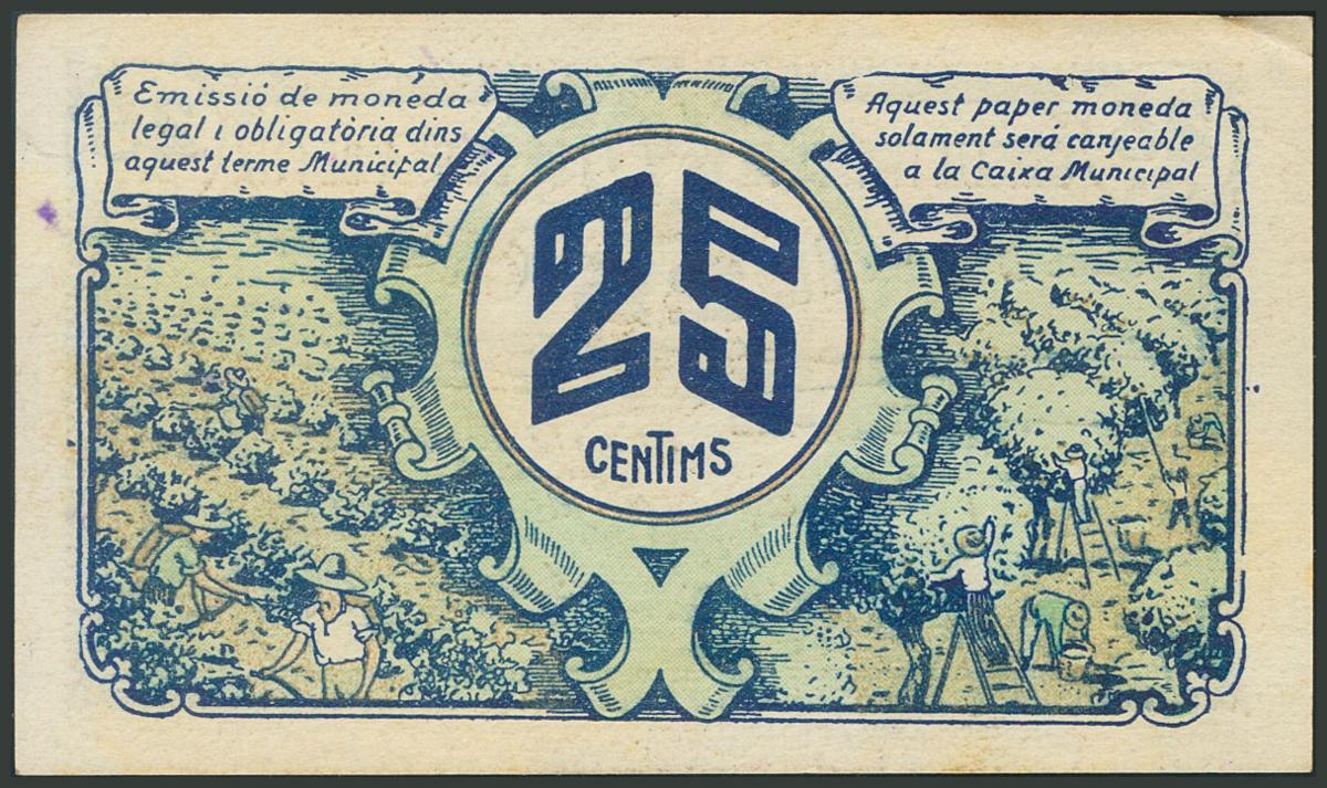 FLIX (TARRAGONA). 25 Céntimos. 19 de Julio de 1937. Serie D. (González: 7886). EBC.