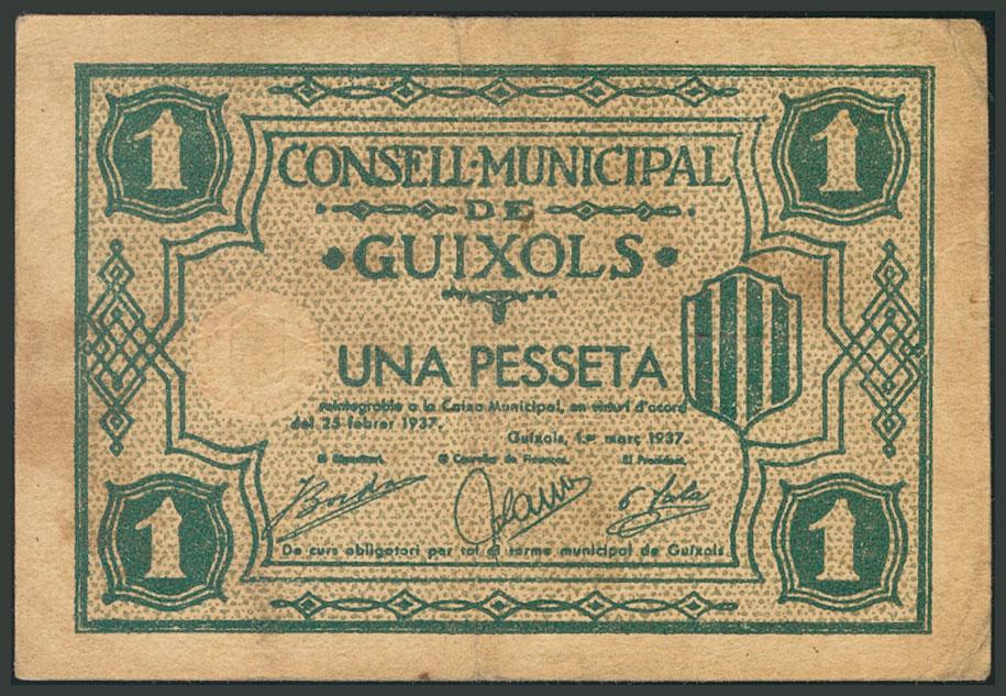 GUIXOLS (GERONA). 1 Peseta. 1 de Mayo de 1937. (González: 8182). BC.