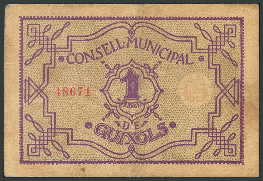 GUIXOLS (GERONA). 1 Peseta. 1 de Mayo de 1937. (González: 8182). BC.