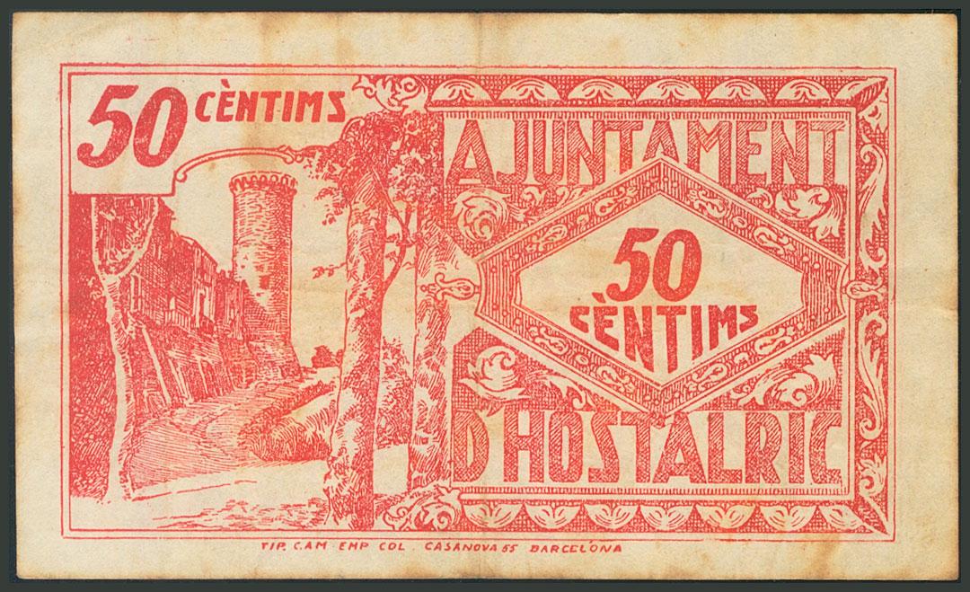HOSTALRIC (GERONA). 50 Céntimos. Junio 1937. (González: 8232). BC.