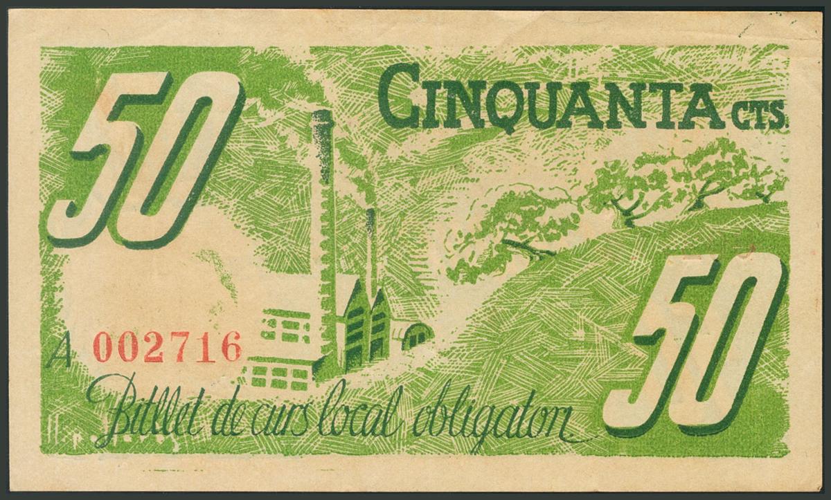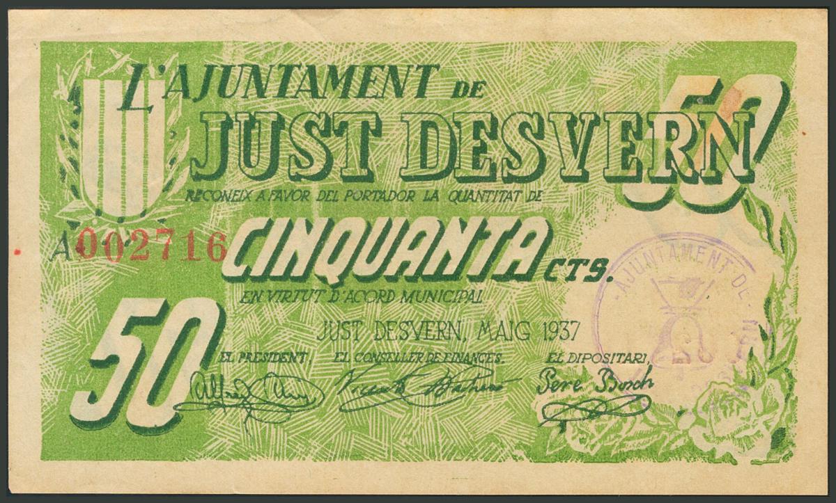 JUST DESVERN (BARCELONA). 50 Céntimos. Mayo de 1937. Serie A. (González: 8300). EBC.