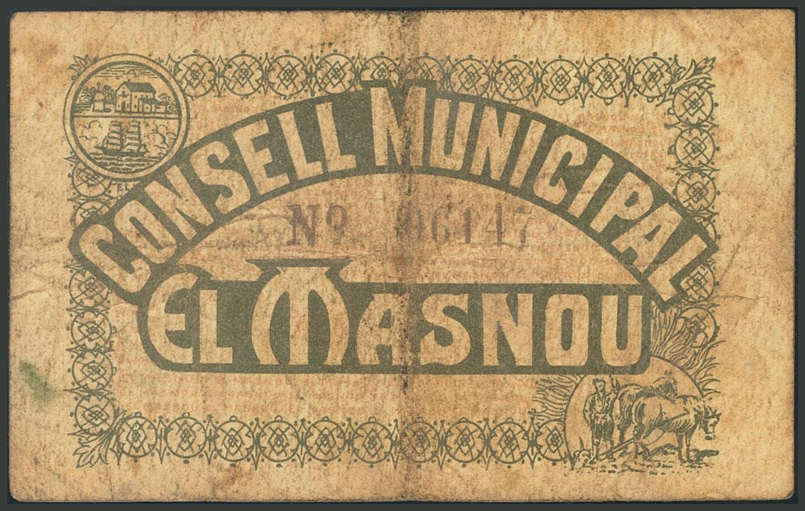 MASNOU (BARCELONA). 25 Céntimos. (1938ca). Serie A. (González: 8605). BC.