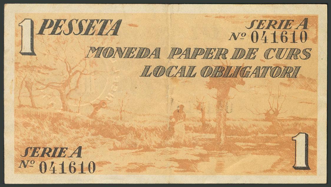 OLOT (GERONA). 1 Peseta. 1 de Marzo de 1937. Serie A. (González: 8951). EBC.