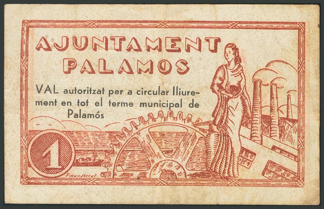 PALAMOS (GERONA). 1 Peseta. 11 de Mayo de 1937. Serie A. (González: 9096). MBC.