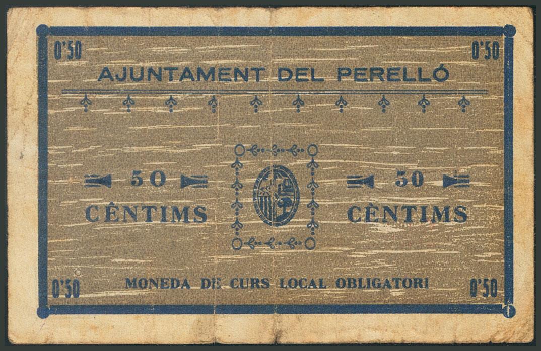 PERELLO (TARRAGONA). 50 Céntimos. 6 de Junio de 1937. (González: 9203). BC.