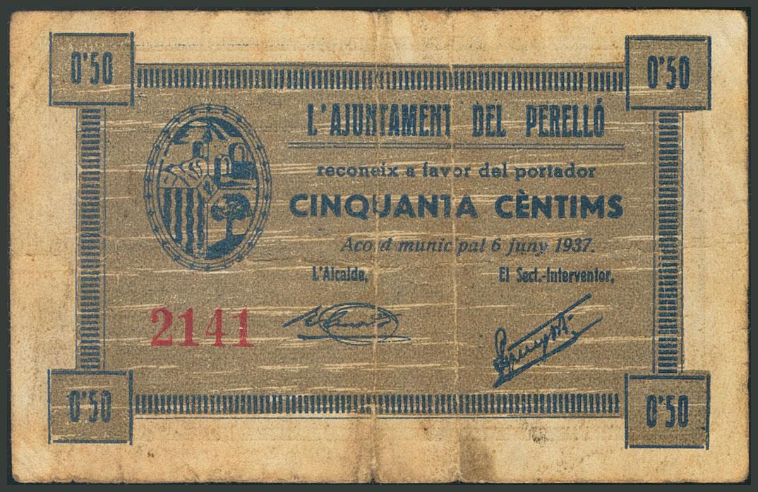 PERELLO (TARRAGONA). 50 Céntimos. 6 de Junio de 1937. (González: 9203). BC.