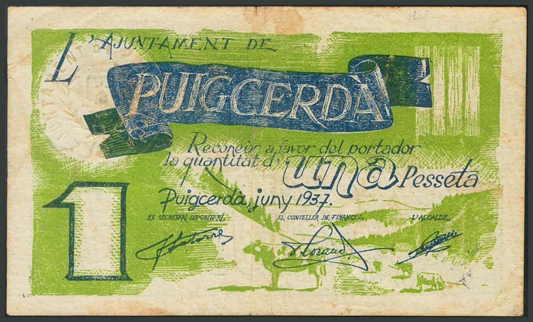 PUIGCERDA (GERONA). 1 Peseta. Junio 1937. Serie A. (González: 9488). BC.