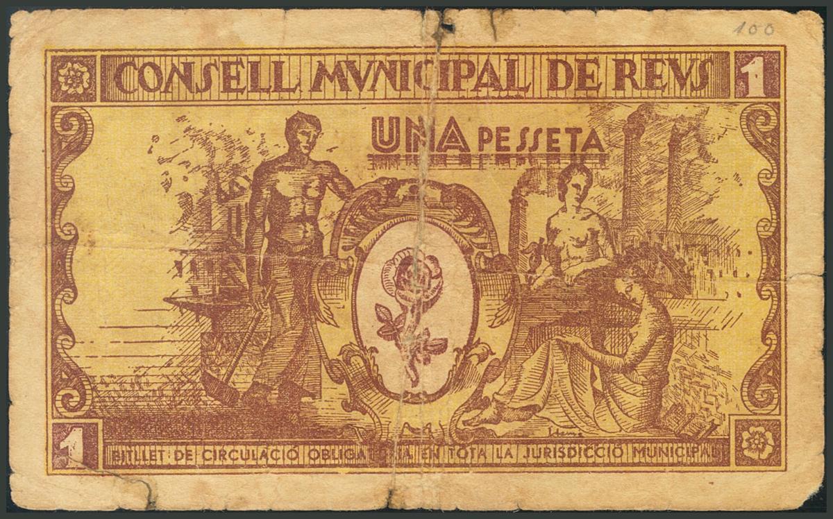REUS (TARRAGONA). 1 Peseta. 14 de Abril de 1937. Serie D. (González: 9563). RC.