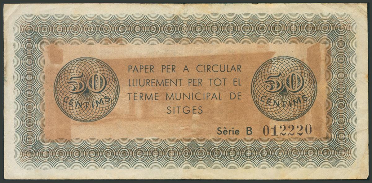 SITGES (BARCELONA). 50 Céntimos. 1 de Junio de 1937. Serie B. (González: 10013). BC.