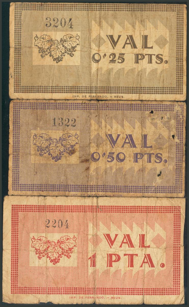 SOLIVELLA (TARRAGONA). 0´25 Pesetas, 0´50 Pesetas y 1 Peseta. 2 de Mayo de 1937. (González: 10025/27). Inusual. RC.