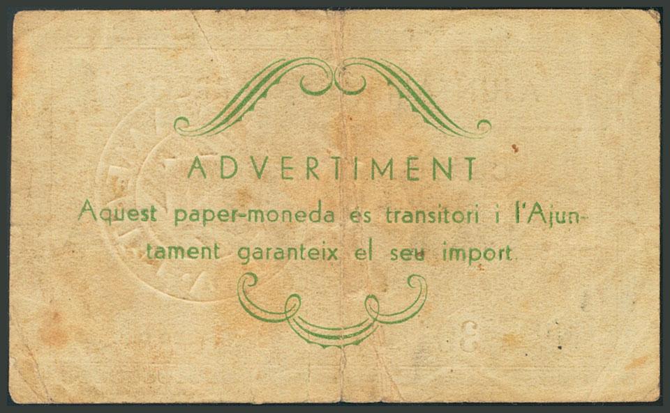 TARREGA (LERIDA). 1 Peseta. Febrero 1937. (González: 10099). BC.