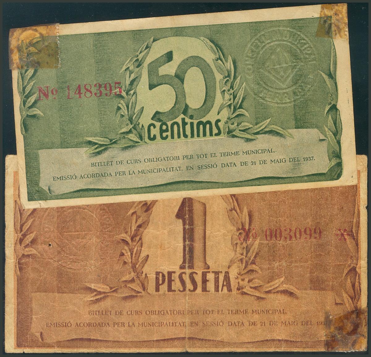 TERRASSA (BARCELONA). 50 Céntimos y 1 Peseta. 21 de Abril de 1937. (González: 10132/33). BC.