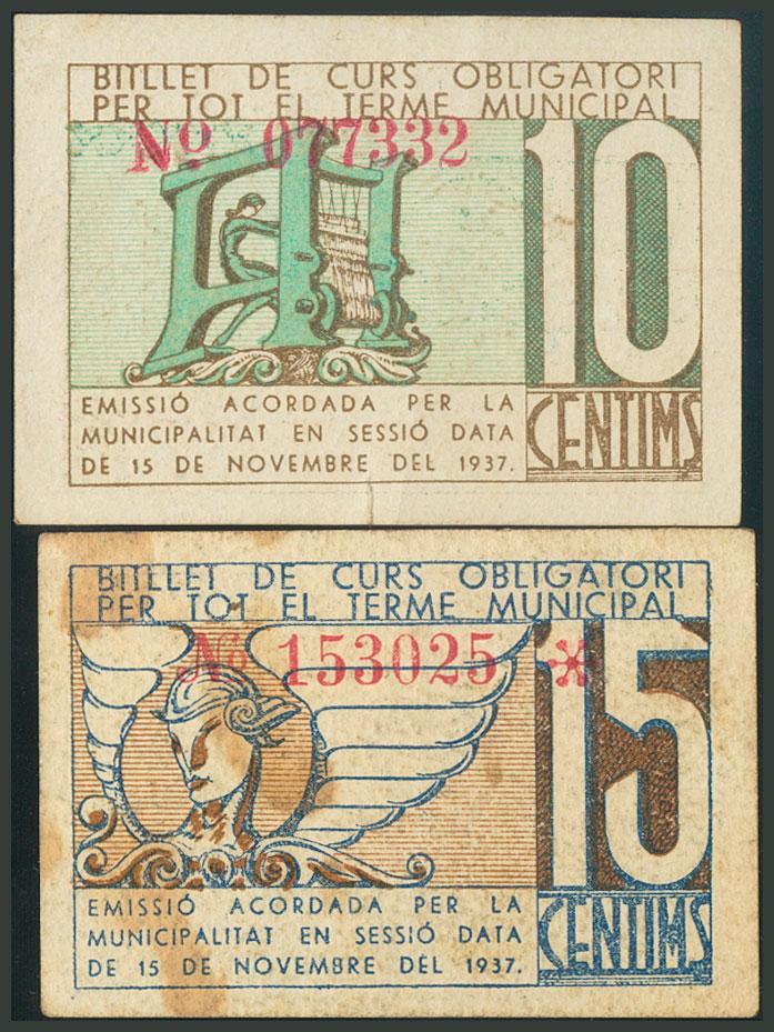 TERRASSA (BARCELONA). 10 Céntimos y 15 Céntimos. 15 de Noviembre de 1937. (González: 10134/35). MBC.