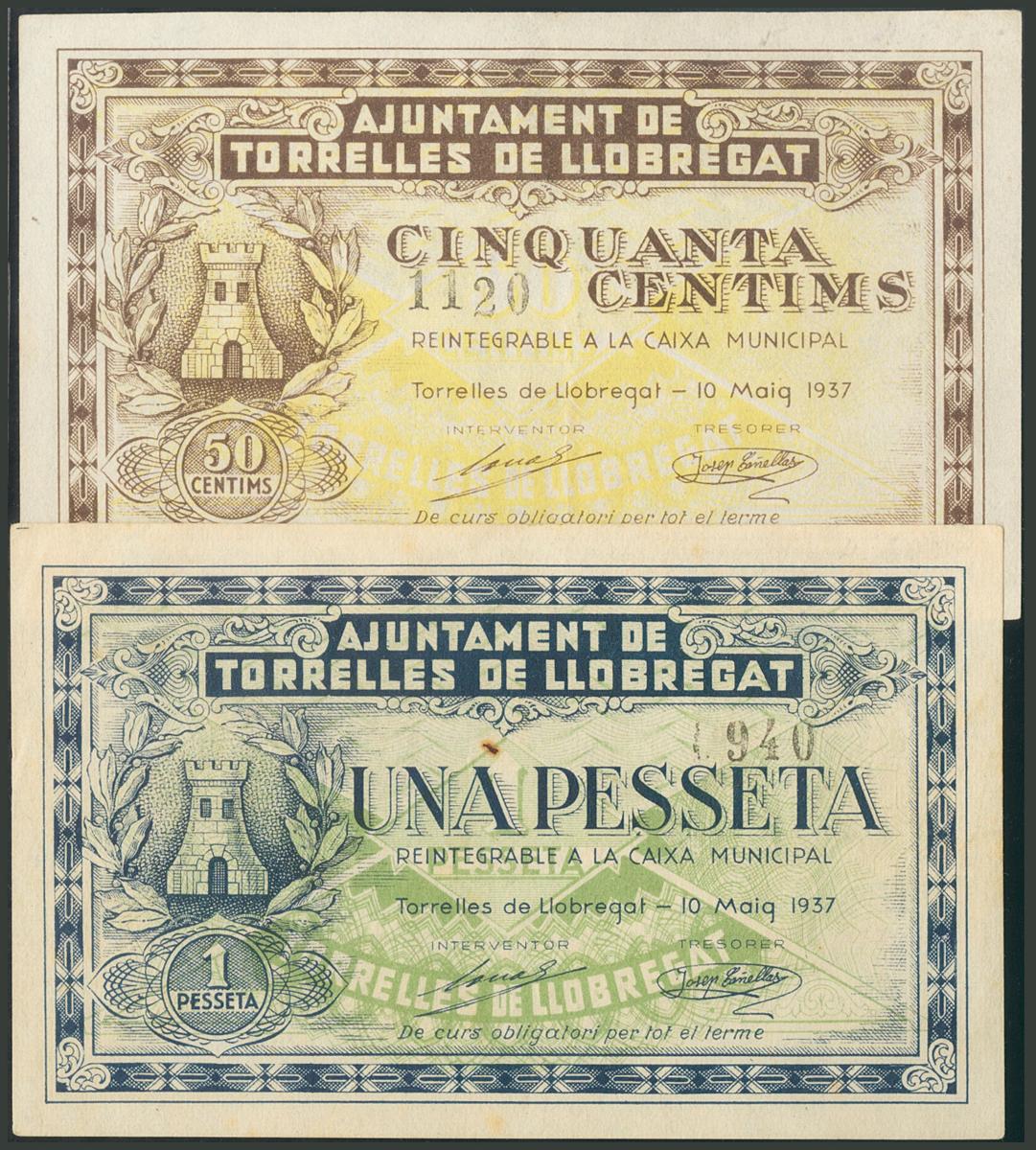 TORRELLES DE LLOBREGAT (BARCELONA). 50 Céntimos y 1 Peseta. 10 de Mayo de 1937. (González: 10380/81). EBC.