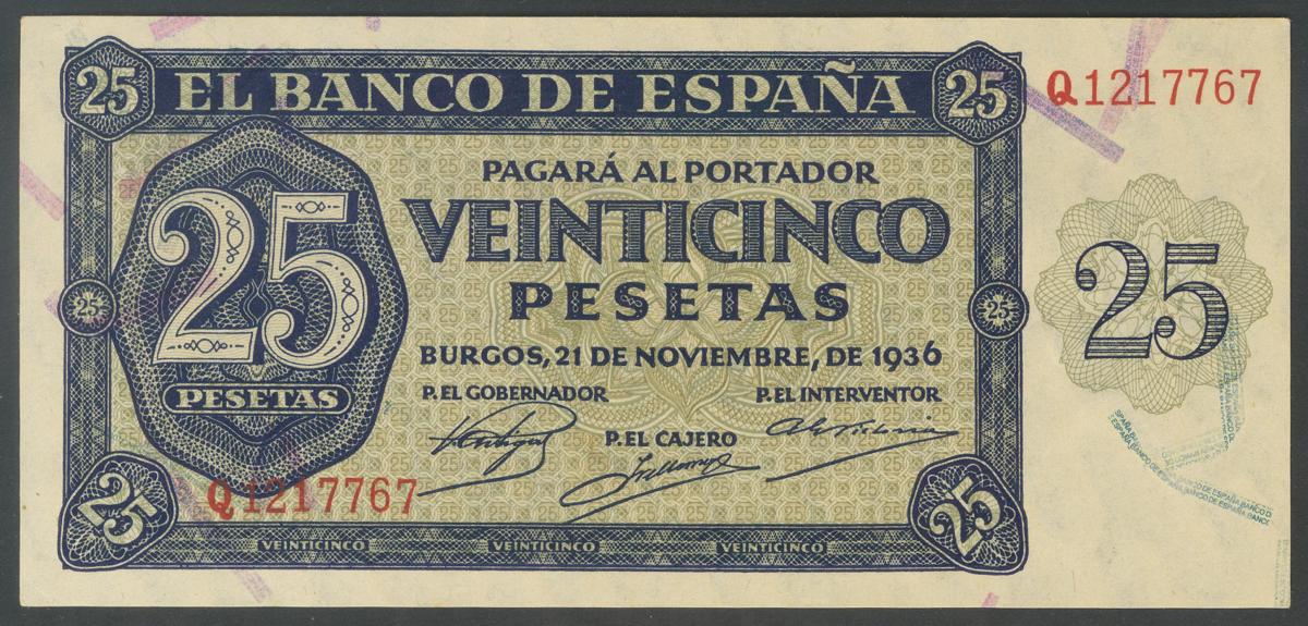 25 Pesetas. 21 de Noviembre de 1936. Serie Q. (Edifil 2017: 419A). EBC+.