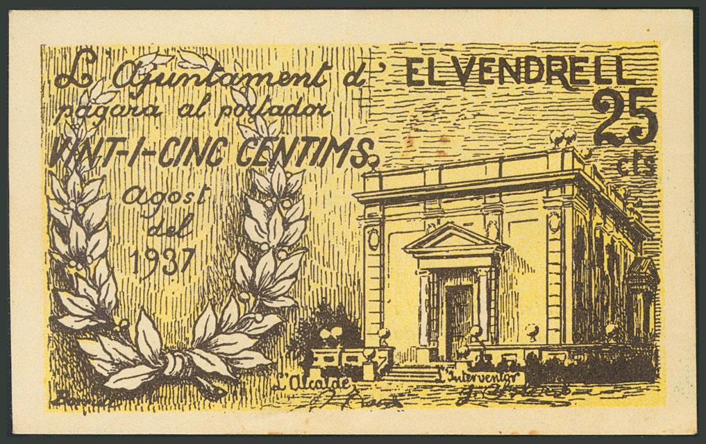 VENDRELL (TARRAGONA). 25 Céntimos. Agosto 1937. (González: 10599). EBC.
