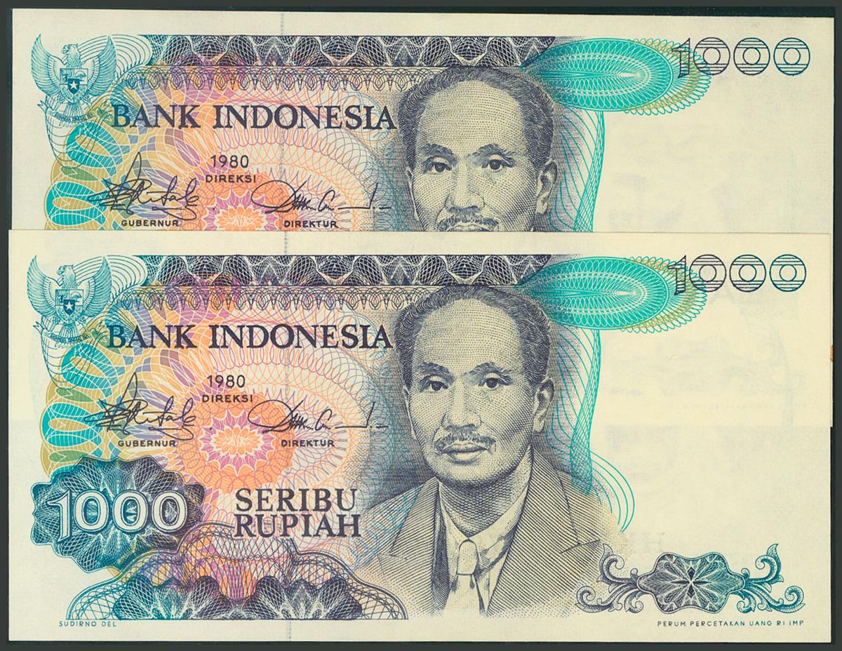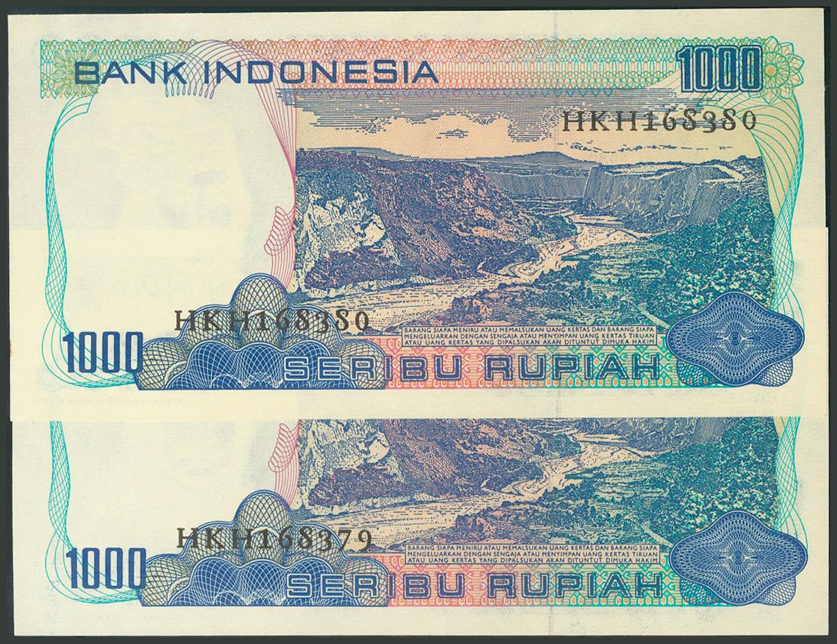 INDONESIA. 1000 Rupiah. 1980. Pareja correlativa. Serie HKH. (Pick: 119). SC.