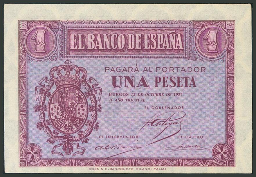 1 Peseta. 12 de Octubre de 1937. Serie E. (Edifil 2017: 425a). SC-.