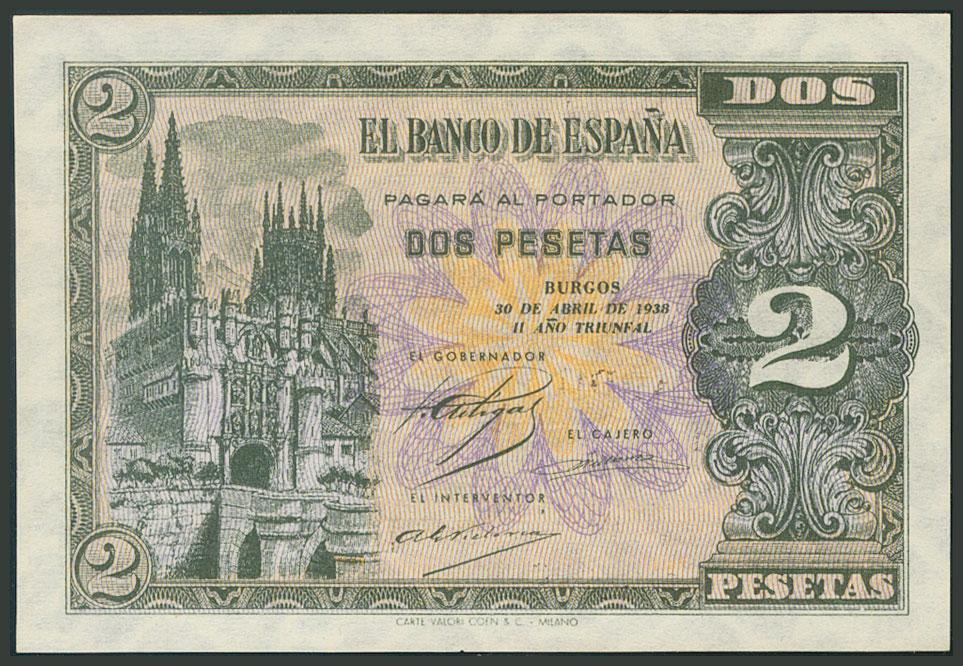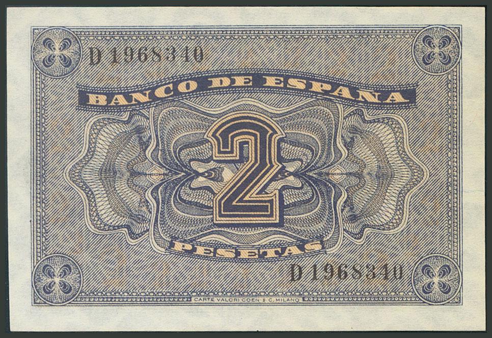 2 Pesetas. 30 de Abril de 1938. Serie D. (Edifil 2017: 429a). Apresto original. SC.