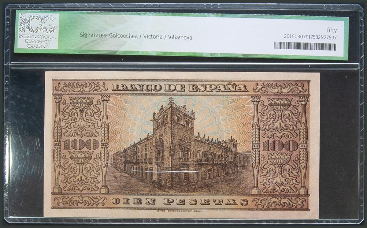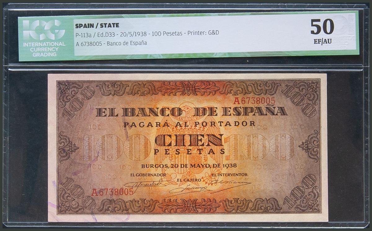 100 Pesetas. 20 de Mayo de 1937. Serie A. (Edifil 2017: 432). Encapsulado ICG50. EBC.