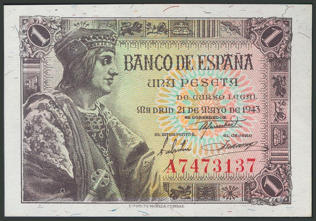 1 Peseta. 21 de Mayo de 1943. Serie A. (Edifil 2017: 447a). SC.