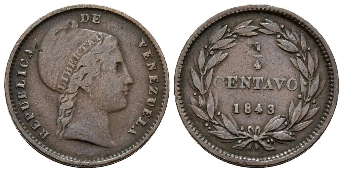 REPÚBLICA DE VENEZUELA. 1/4 Centavo. (Cu. 3,00g/19mm). 1843. Londres. (Km#Y3). MBC.