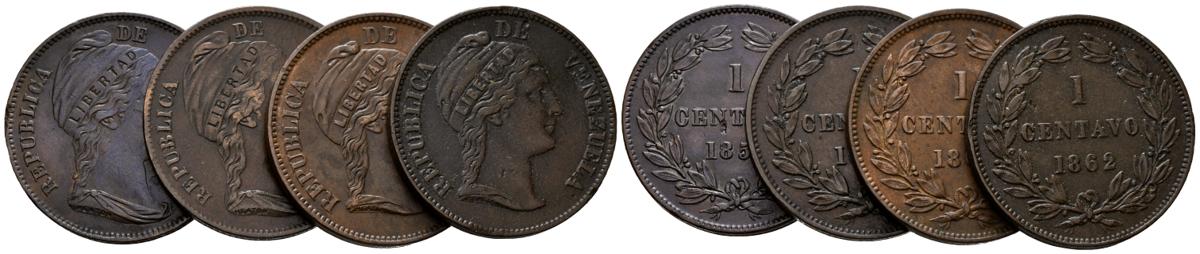REPÚBLICA DE VENEZUELA. Lote compuesto por 4 monedas de 1 Centavo de diferentes años. MBC/EBC-. A EXAMINAR.