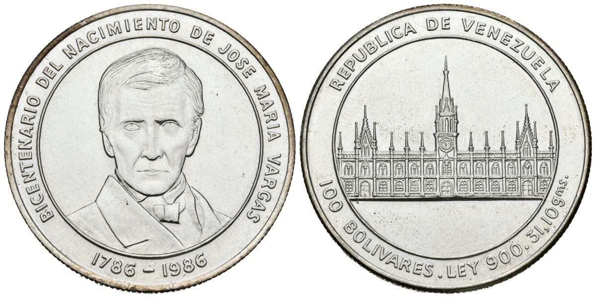 REPÚBLICA DE VENEZUELA. 100 Bolívares. 1986. (31,1g/34mm). KM-Y60. 200 Aniversario del nacimiento de José María Vargas. SC-.