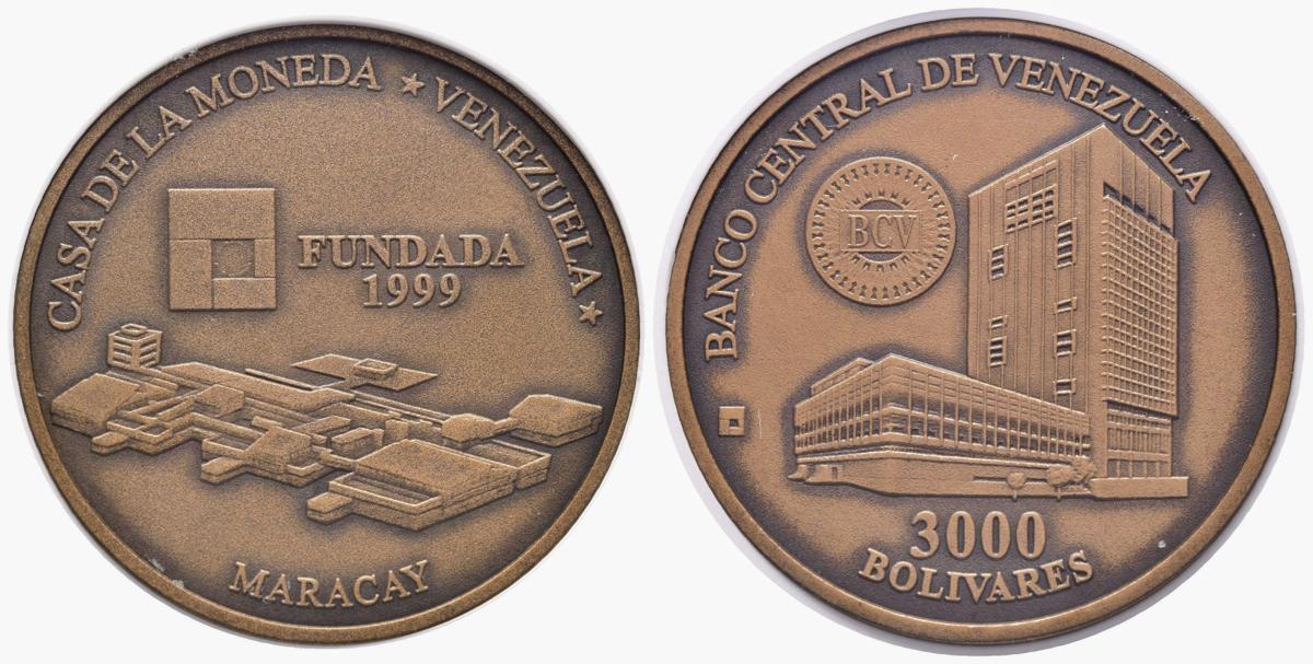 REPÚBLICA BOLIVARIANA DE VENEZUELA. 3000 Bolívares. 1999. (Ae. 32,00g/35mm). 1999. Casa de la Moneda de Venezuela. Maracay, fundada en 1999. (UC-300). Encapsulado NGC MS-69 ANTIQUED.