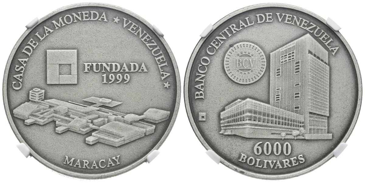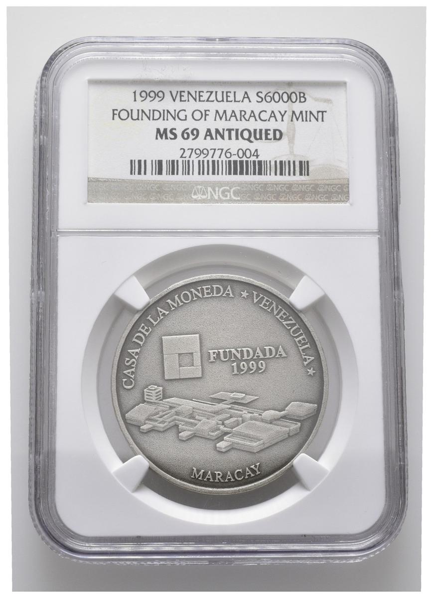 REPÚBLICA BOLIVARIANA DE VENEZUELA. 6000 Bolívares. 1999. (Ar. 28,00g/35mm). KM-Y86. Casa de la Moneda de Venezuela. Maracay. Fundada en 1999. Encapsulado NGC MS-69 ANTIQUED.