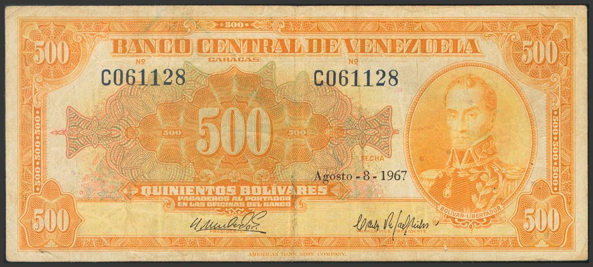 VENEZUELA. 500 Bolívares. 8 de Agosto de 1967. Serie C. (Pick: 37c, Sleiman: 31). MBC+.